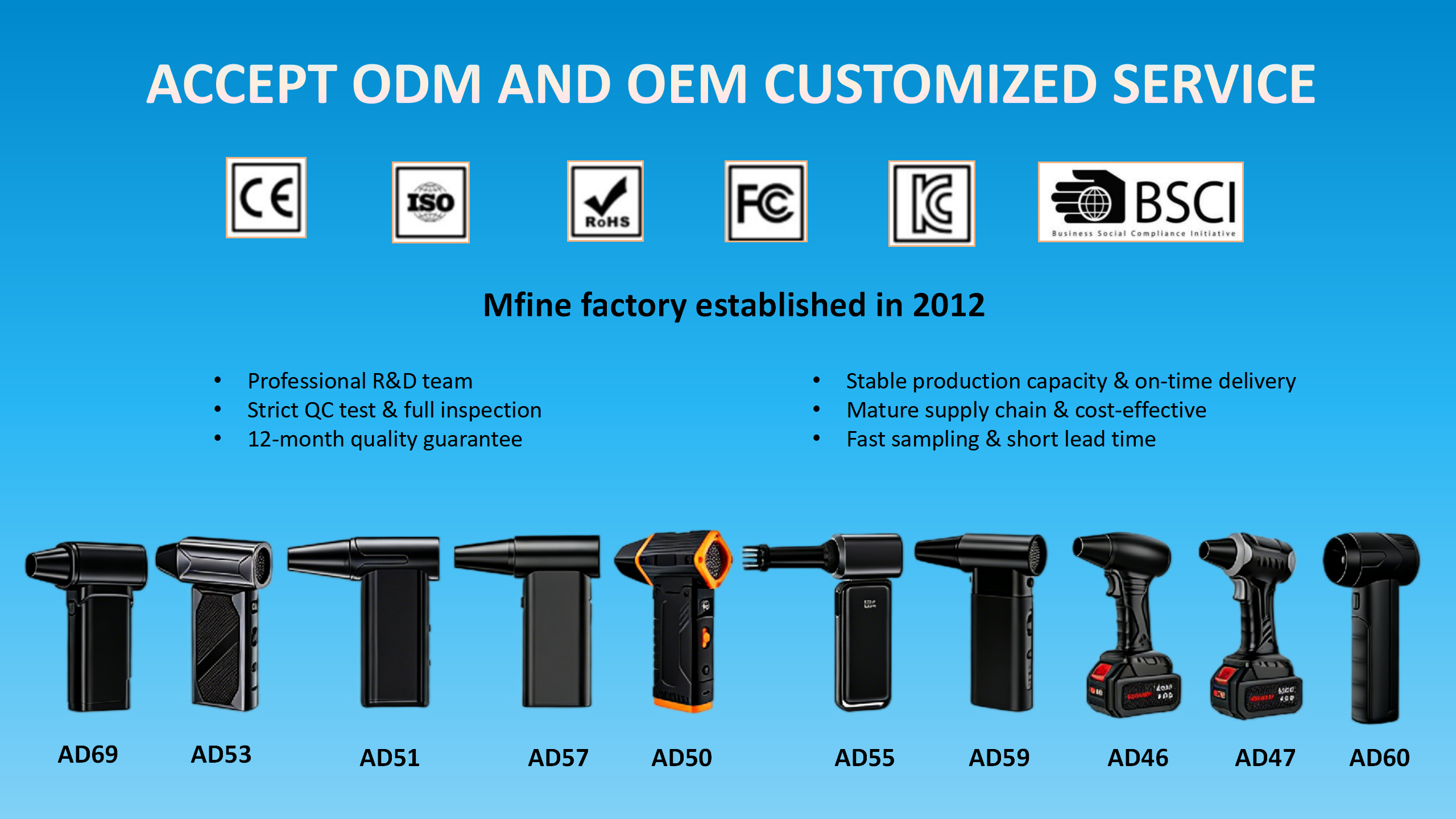 During the ODM/OEM R&D phase, we conduct scenario-based reliability tests tailored to customized needs, optimizing product structure to avoid performance shortcomings caused by custom designs. Our professional R&D and production teams oversee every process, with standardized assembly and inspection to ensure consistent product quality. We also establish a closed-loop after-sales feedback mechanism, collecting end-user opinions to continuously optimize customization solutions and enhance long-term reliability. Partner with us, and let’s turn everyday frustrations into reasons why customers choose your brand—backed by uncompromising quality.