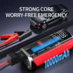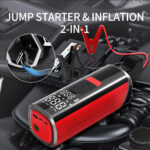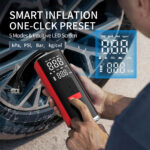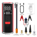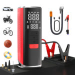 Características: 25-cylinder aluminum alloy, button-type,fast charging 45W (dual TYPE-C), with car start, Iluminación LED, air pressure detection, air pump, compatible with trucks and cars, bicycles, motorcycles, and balls.