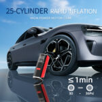 Kinzir V1 Smart Air Pump – 25 Cylinder 120W 6000mAh, Dual Type-C/DC, Luz LED & Pressure Detection for Cars/Trucks/Bikes/Balls