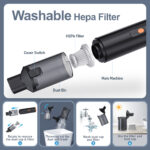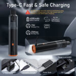 Kinzir VC28B Car Vacuum Portable Cordless Handheld Vacuum Cleaner 8-in-1 Mini Cordless Vacuum with 2 Suction Modes and 12000pa Suction Power Blowing & Inflating 2 Modes Handheld Vacuum for Car, Desk, Keyboards