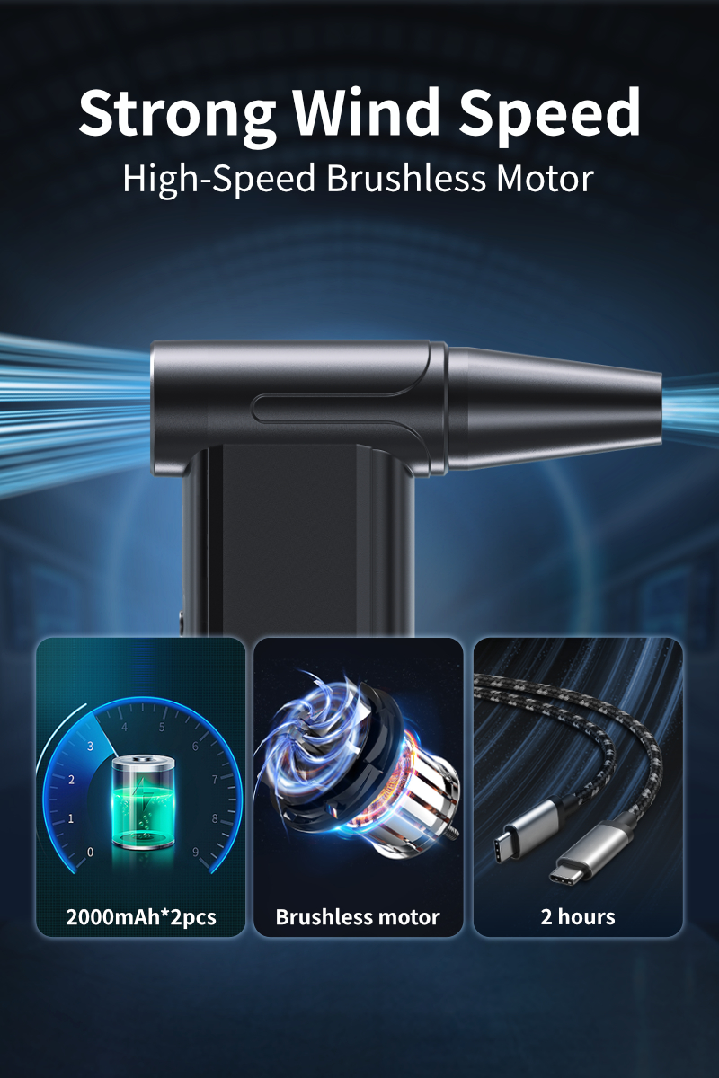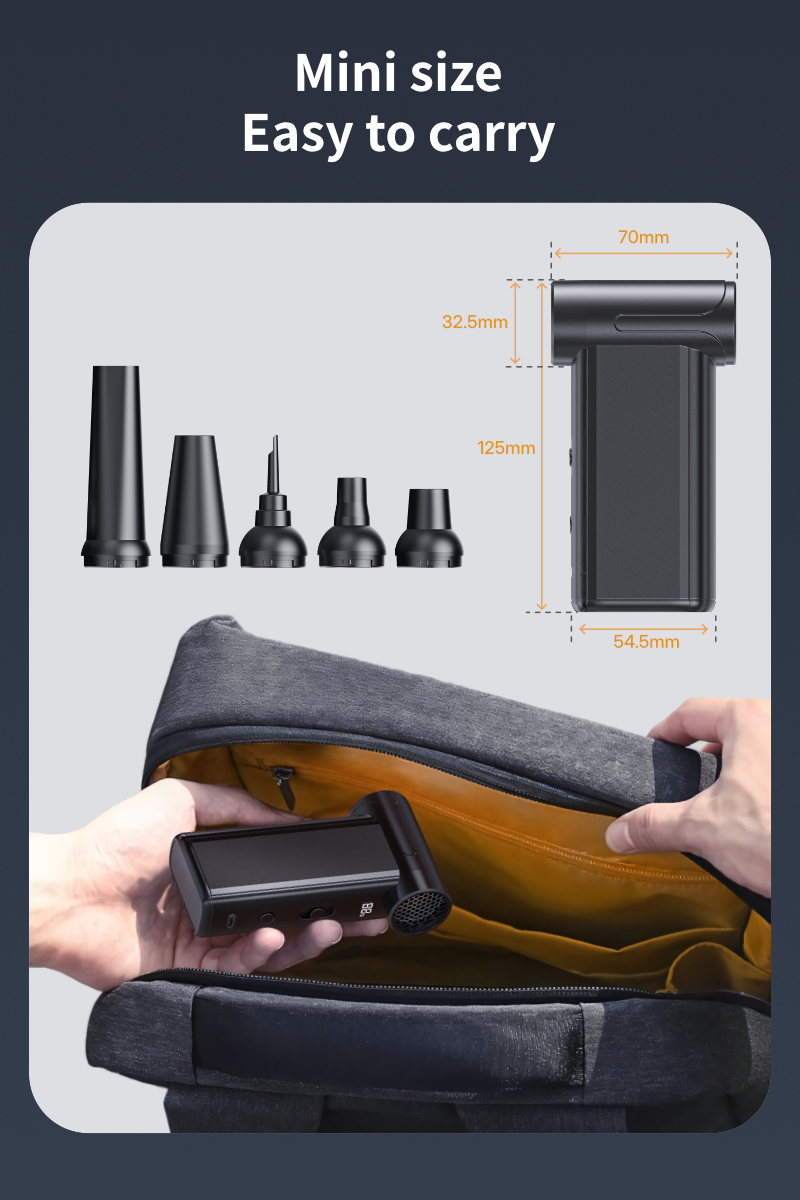 Kinzir AD51 Compressed Air Duster-130000RPM Super Power Electric Air Duster, 8-Gear Adjustable Mini Blower with Fast Charging, Dust Blower for Computer, Keyboard, House, Outdoor and Car